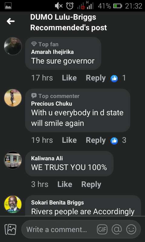 There were many who came under the comments section to share their thoughts and opinions as usual. My observation showed that there were many who acknowledged Dumo as a sure and true governor as well as using similar words. A screenshot of some of the comments is shown below.